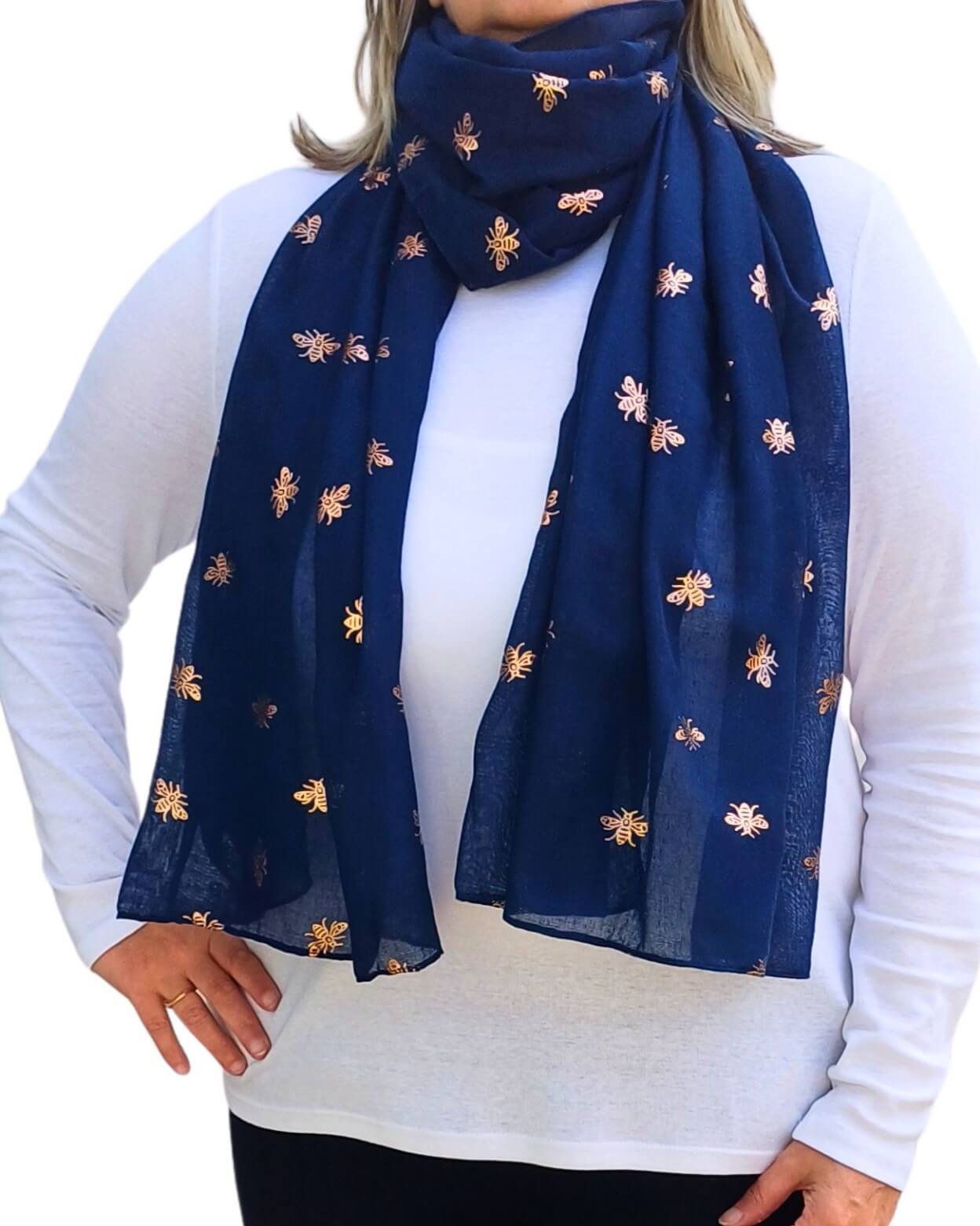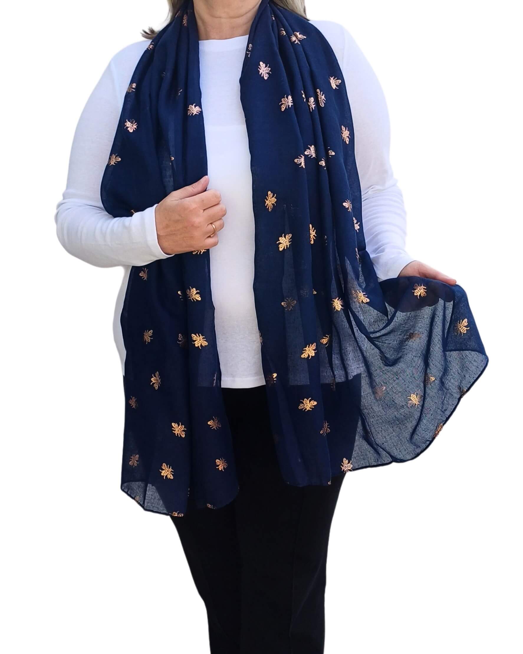 Shine bright and make a statement with our Rose Gold Bumblebee Foiled Print Lightweight Soft Cotton Mix Summer Scarf! Perfect for special occasions, this lightweight and soft scarf features a luxurious bumblebee metallic rose gold foiled print and a cotton viscose mix for an elegant and casual look. Show up and show out--#sparkle!