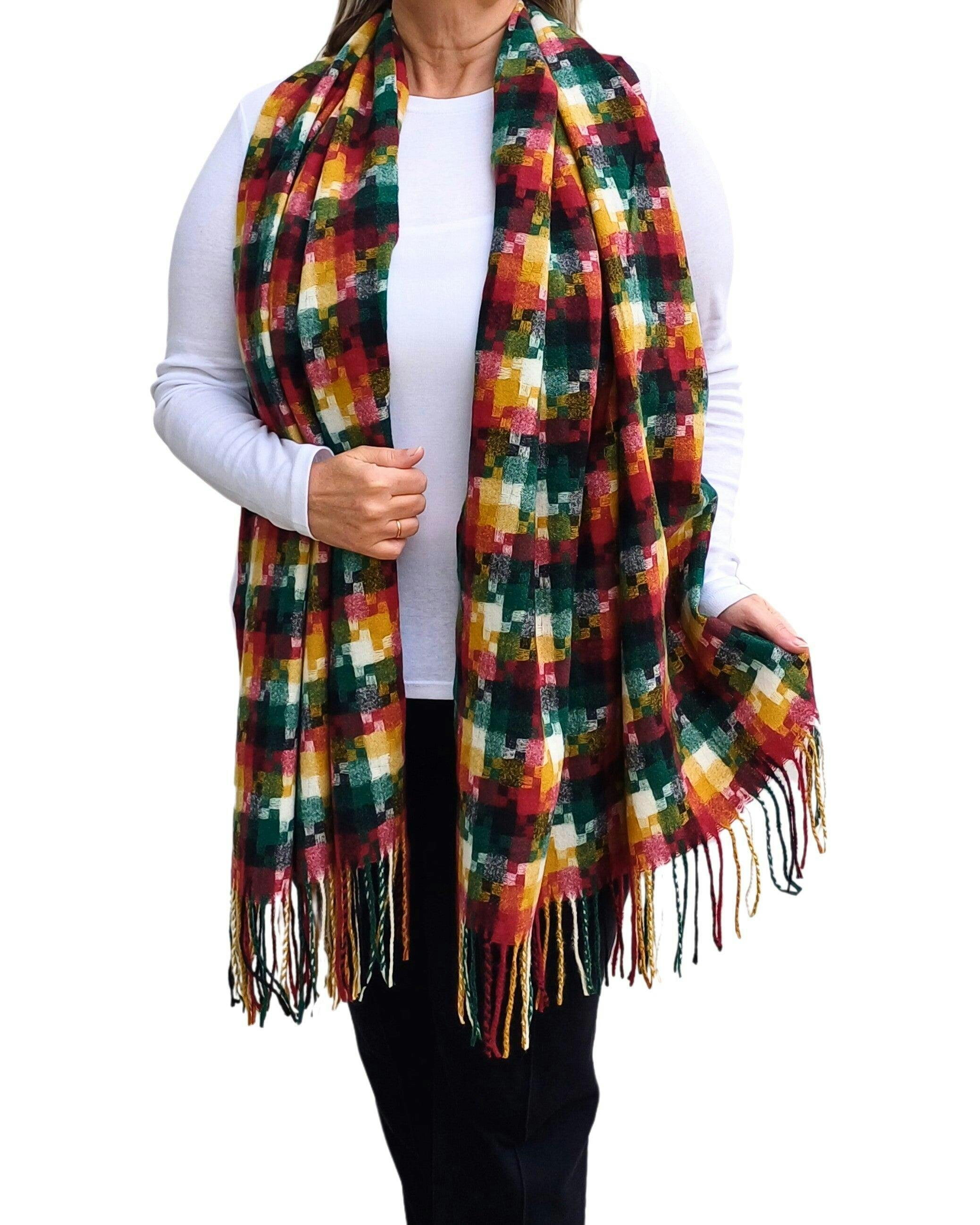 Wrap yourself in warmth and style with this puzzle print winter blanket scarf. Soft, medium-weight fabric and a generous oversized design make it perfect for chilly days, from everyday outings to winter getaways.
