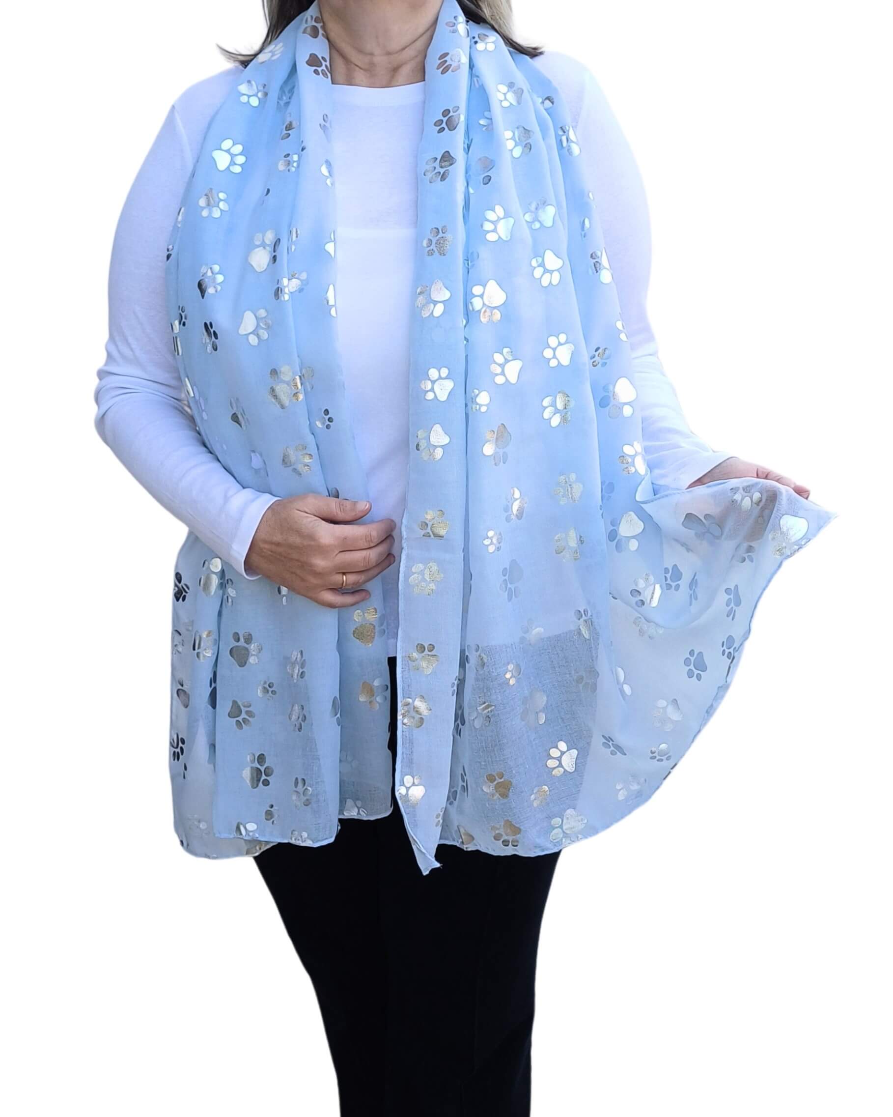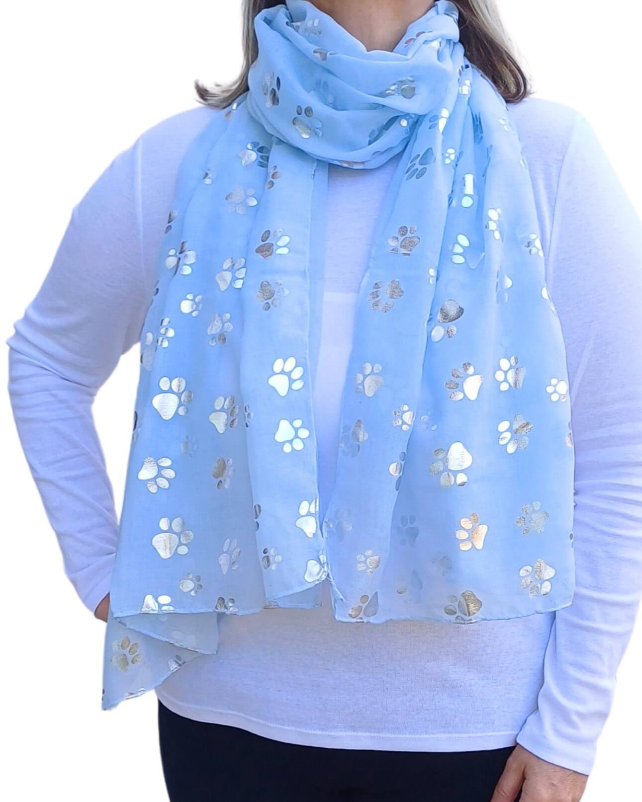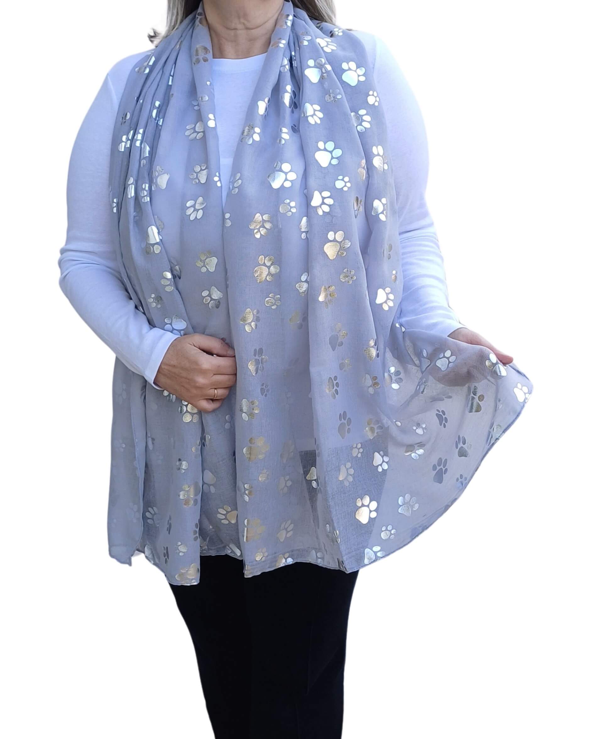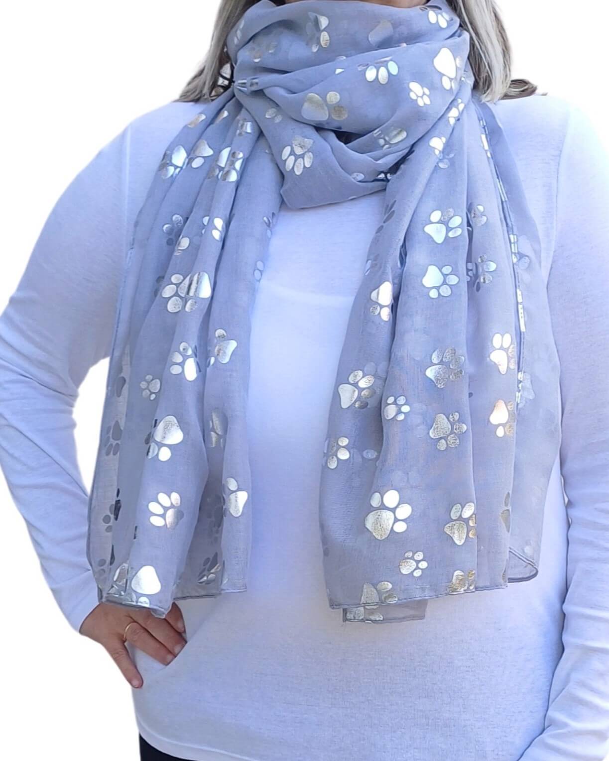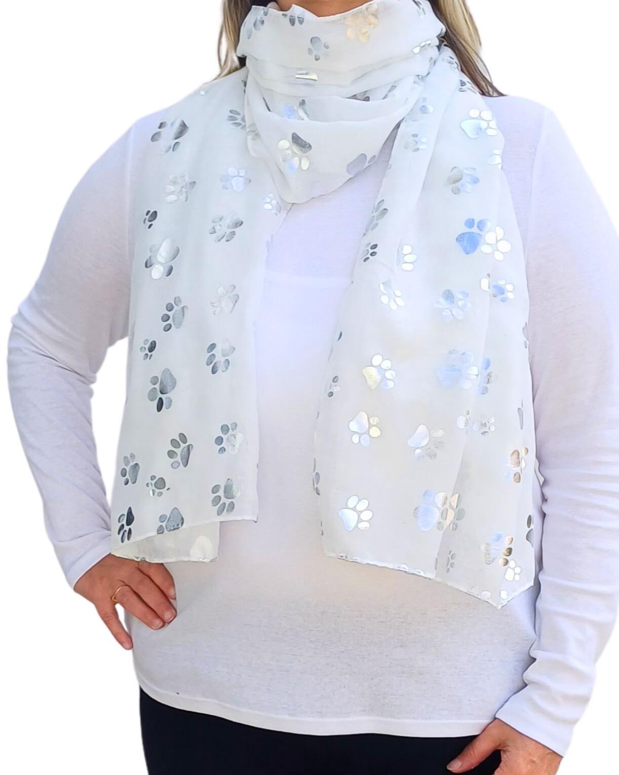 Silver Dog/Cat Paw Print Cotton Mix Scarf